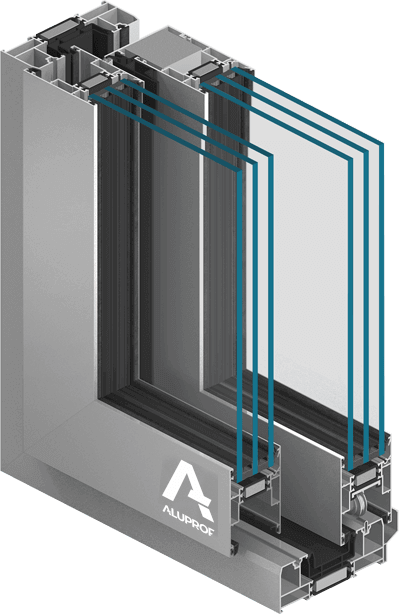 • slim and strong profiles in a three-chamber construction, with a central insulating chamber with wide warm spacers;