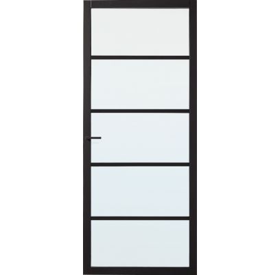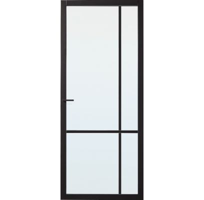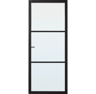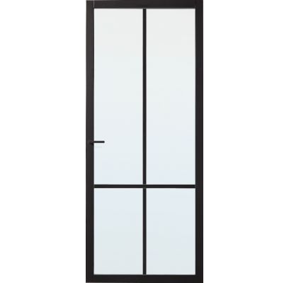 Sleekly designed wooden interior doors with an industrial design. Those are the Skantrae SlimSeries One doors! They are based on steel doors, but are made of wood. The advantage of this is that you can easily paint the door in a different color in the future. The doors are available in a white or black primer and can be used as revolving doors and sliding doors. Choose from three different types of glass, clear glass, fog glass and smoked glass, and panel doors. You can choose between 25 or 45mm for the rods.